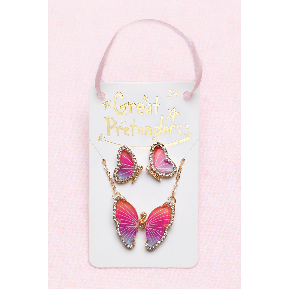 GREAT PRETENDERS BOUTIQUE BUTTERFLY NECKLACE & STUDDED EARRING SET